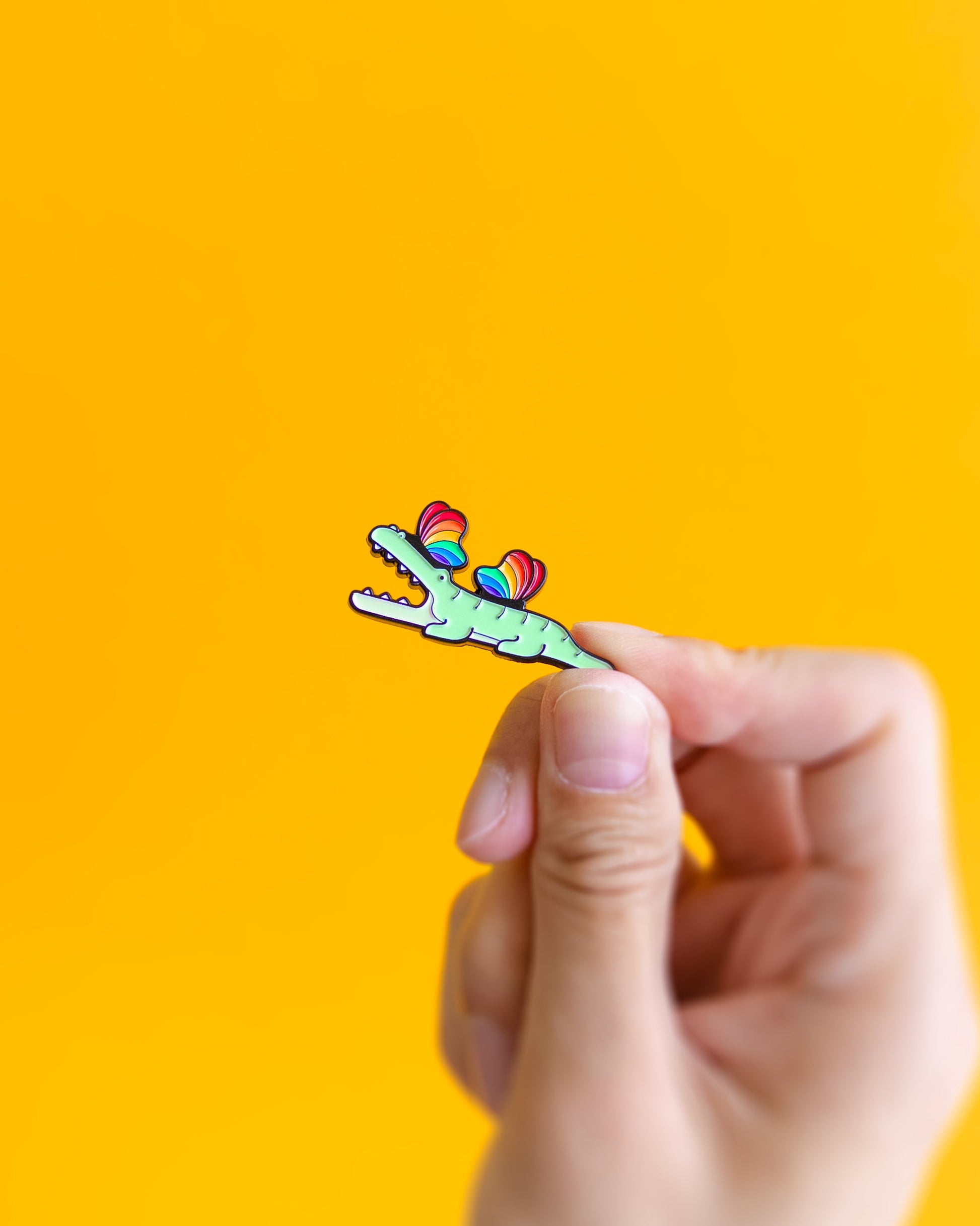 This tiny alligaytor not only fiercely guards its two precious rainbow butterflies, but is also known to ward off unwanted heteronormativity! 🐊🌈