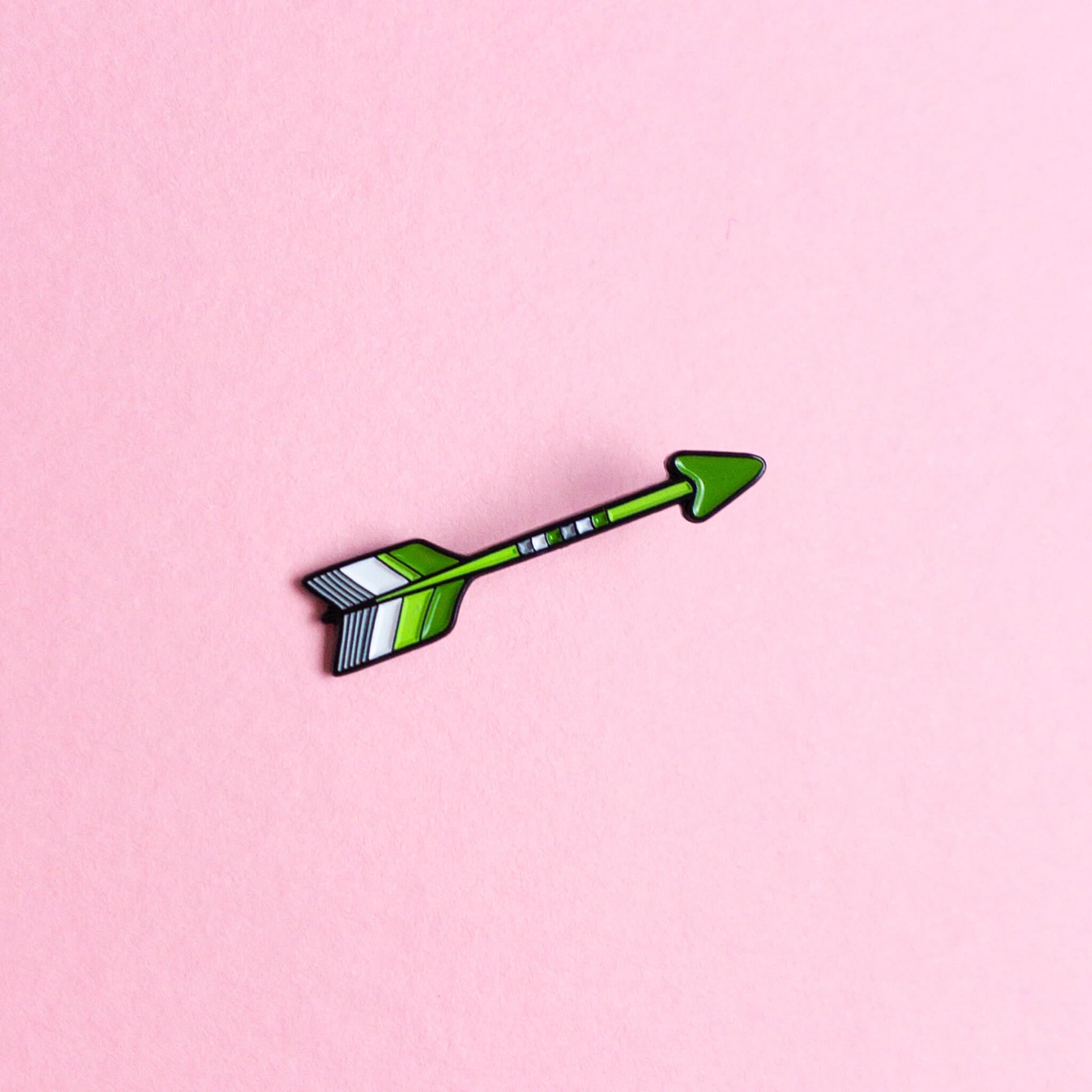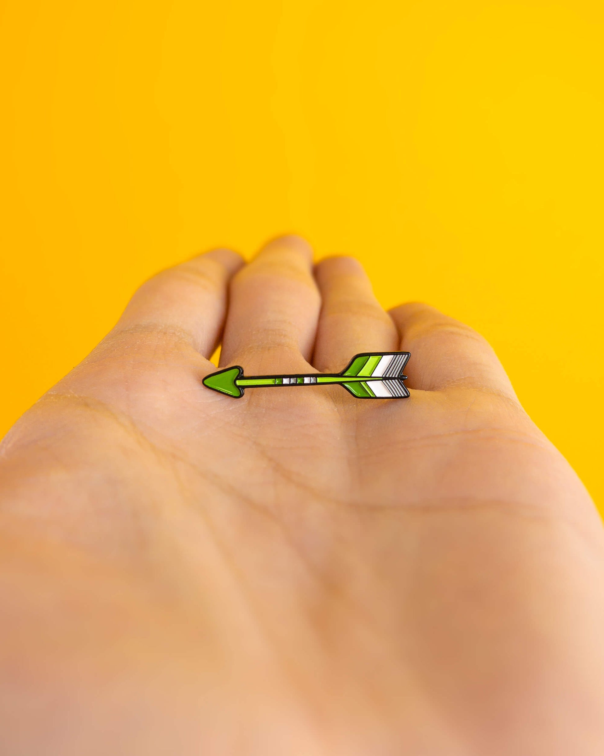 This aro arrow pin sports the wonderful aromantic pride flag colours, and lets you show off your aro pride!ย ๐น๐