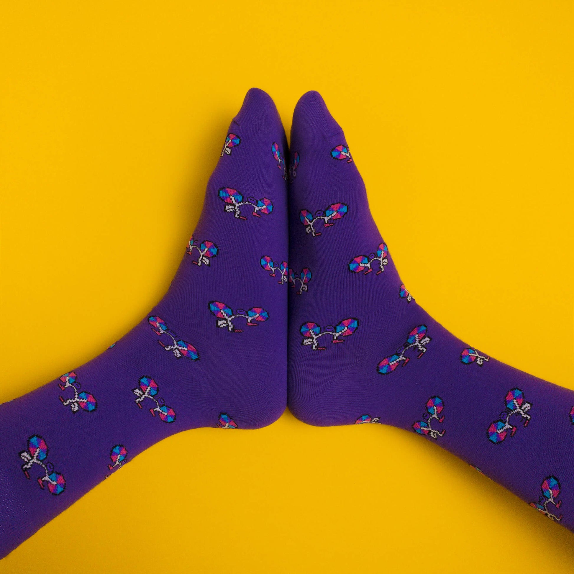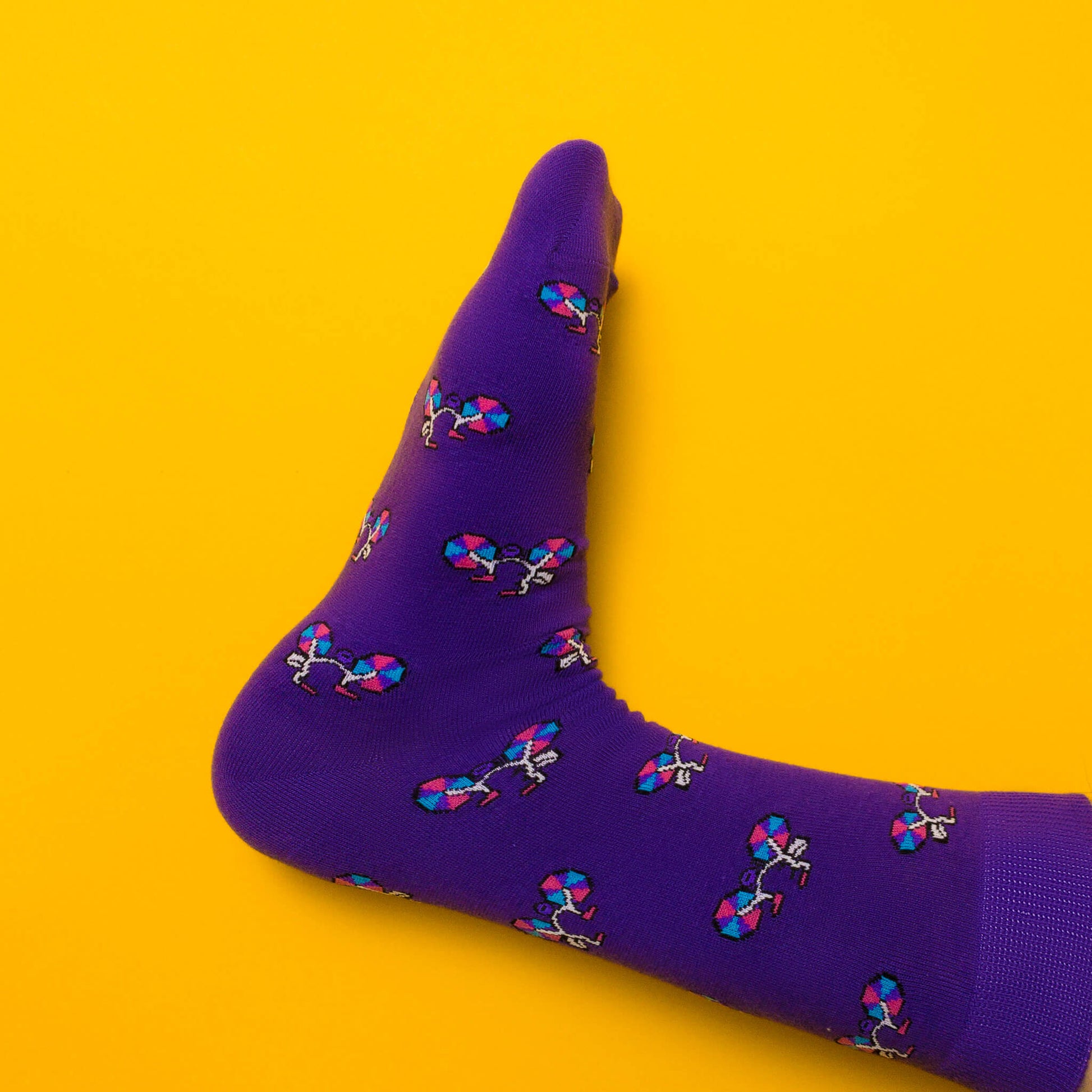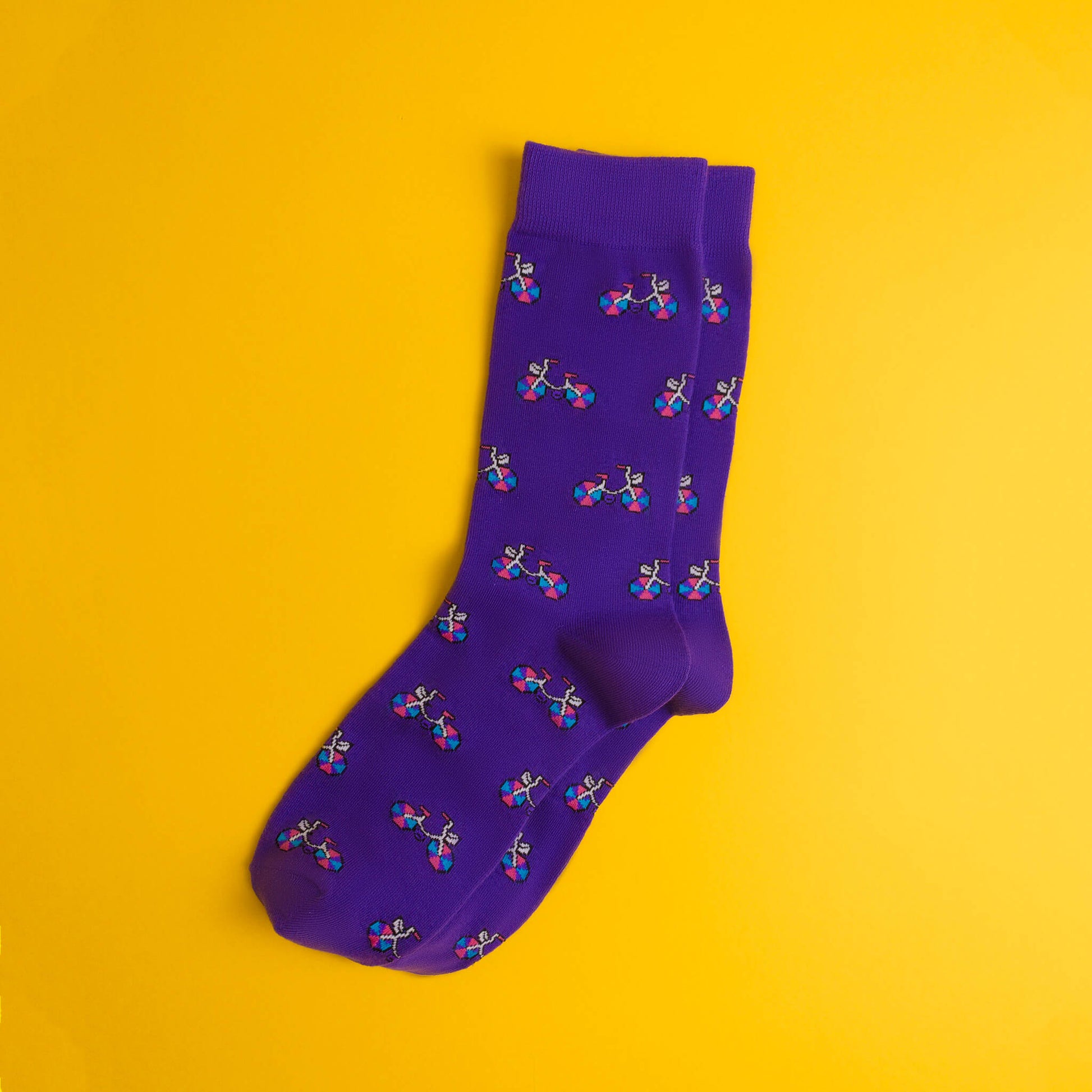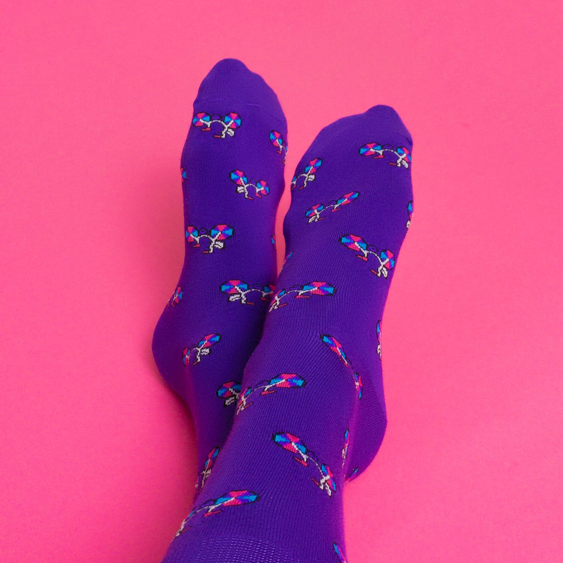 Show off your bisexual pride with these cute bi-coloured bicycle socks!