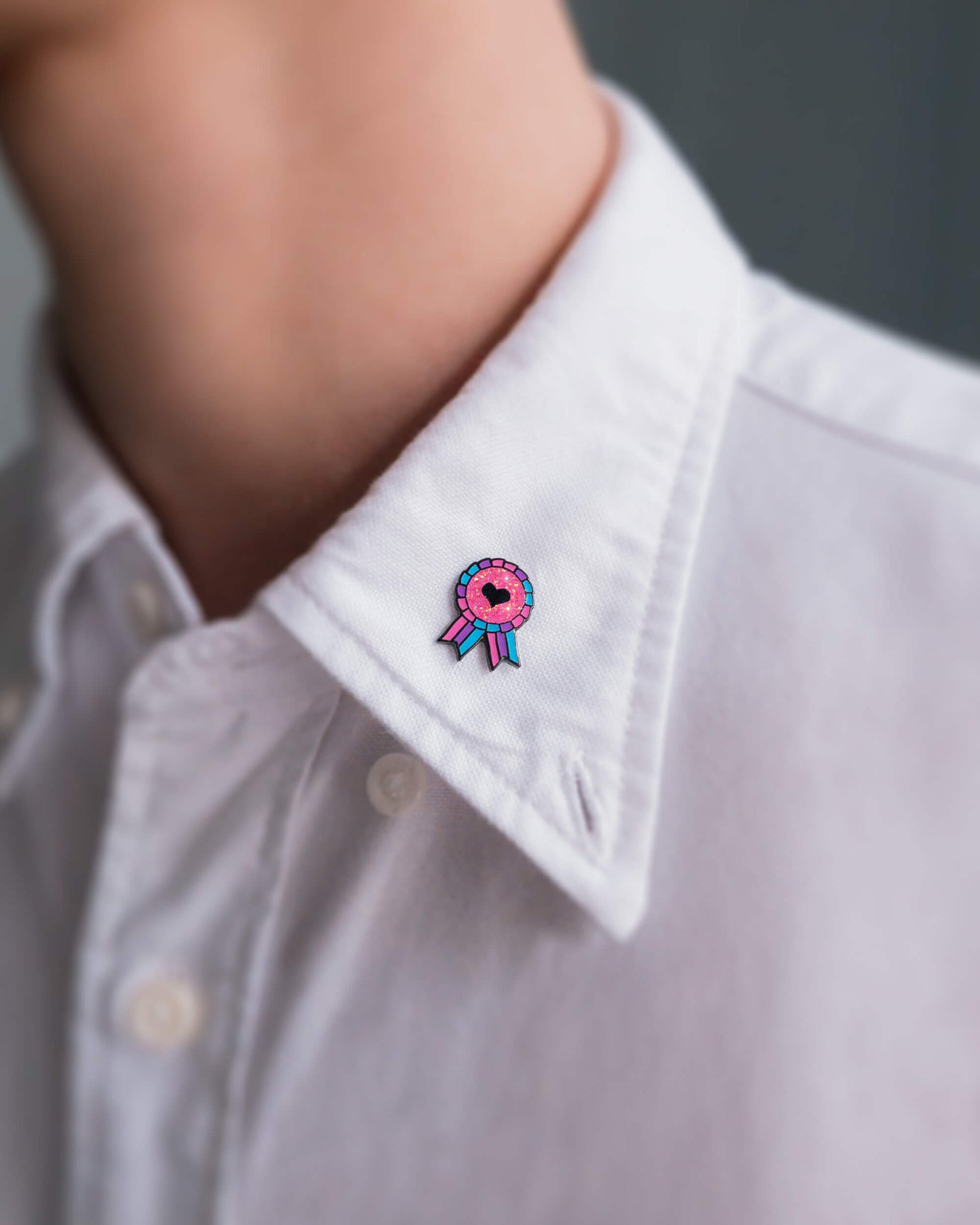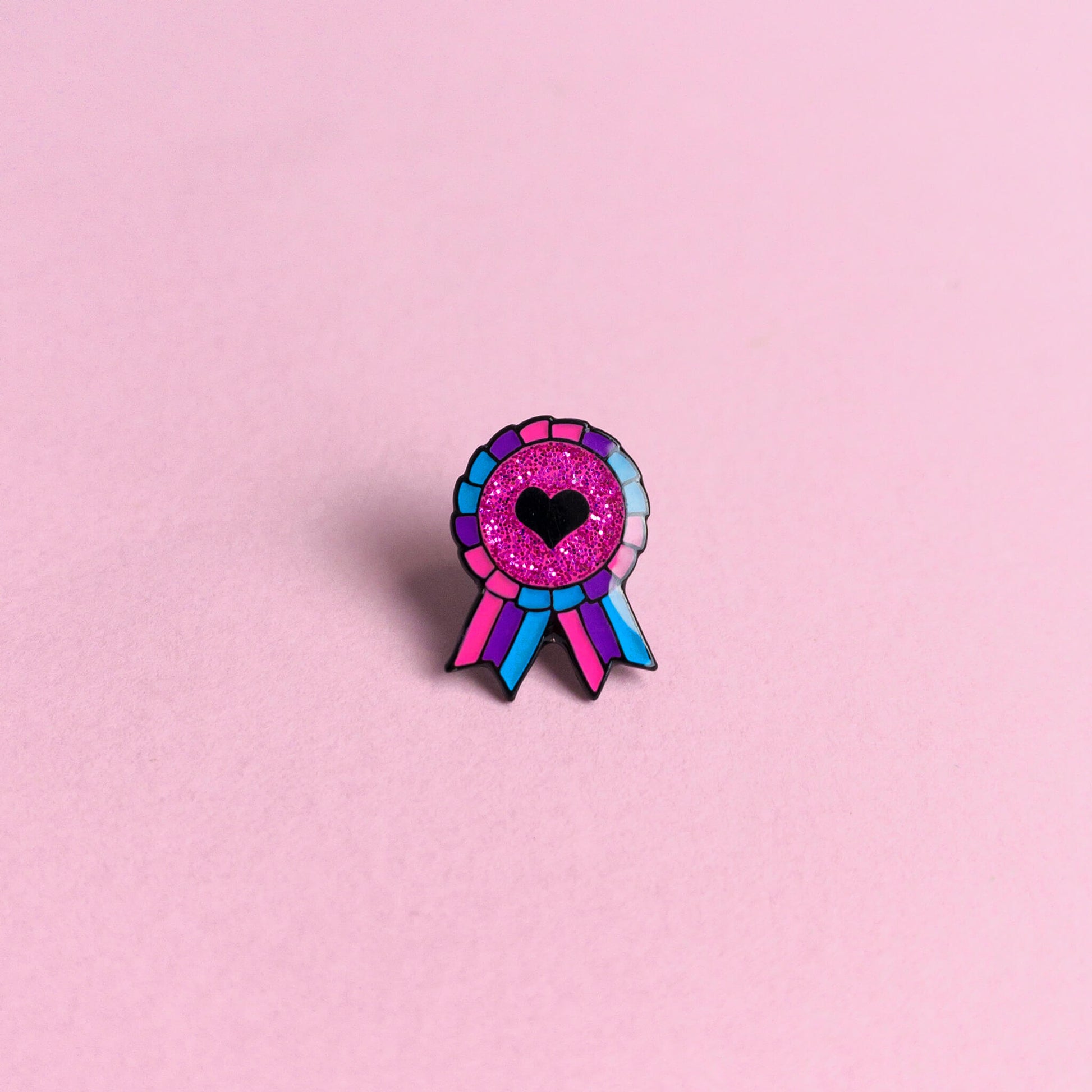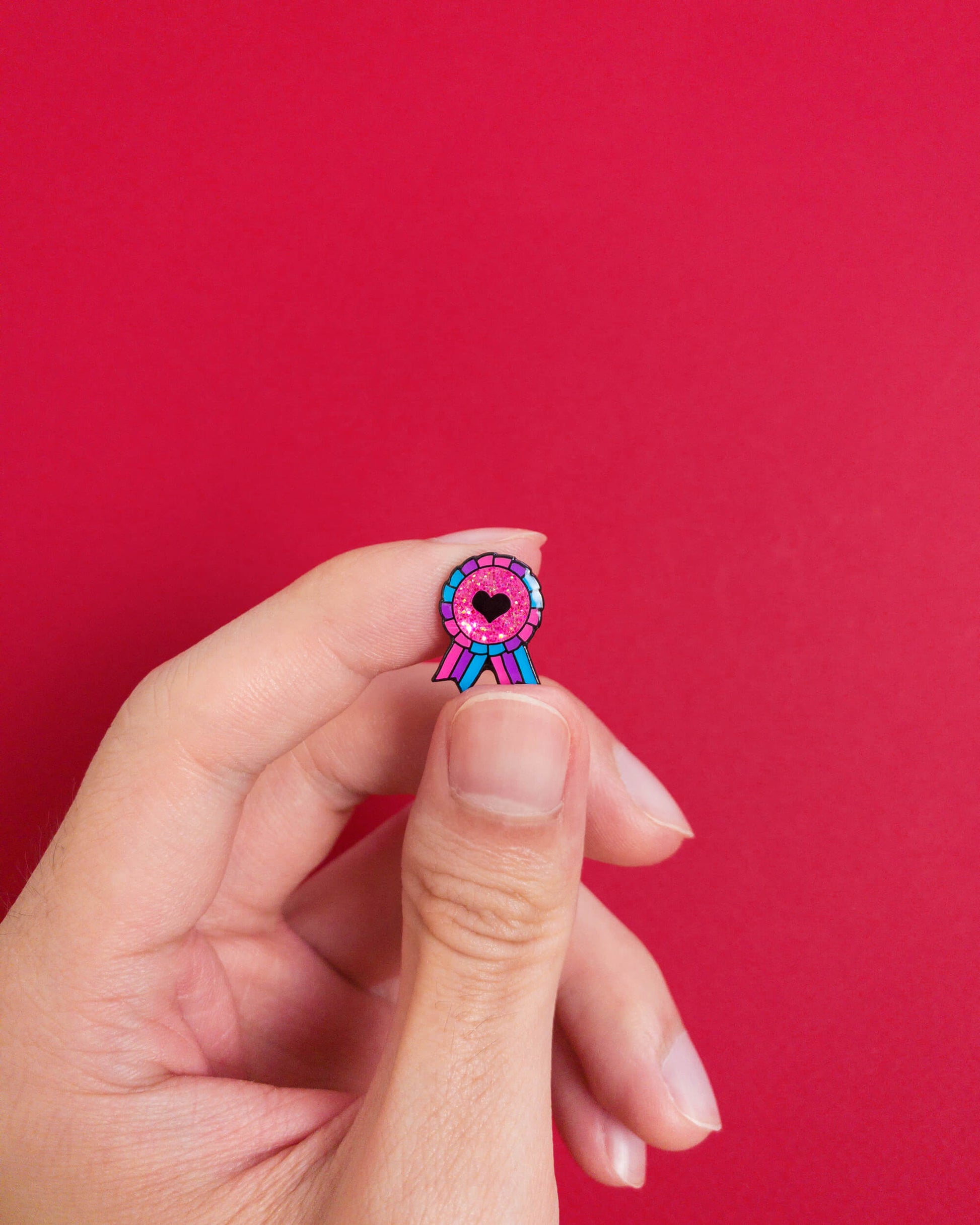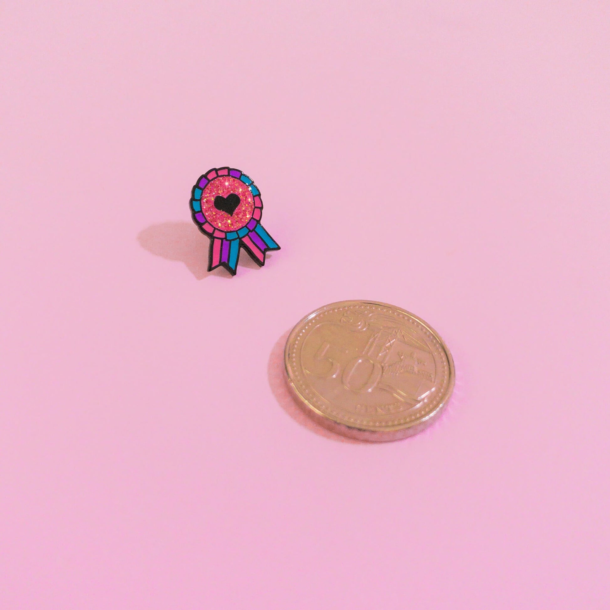 Wear this cute little Bisexual Award Badge to show off your bi pride! It sports the bisexual pride flag colours, and is small and subtle so you don't need to worry about outing yourself to non-affirming people! Also, the centre sparkles, so you can literally let your pride shine ✨.
