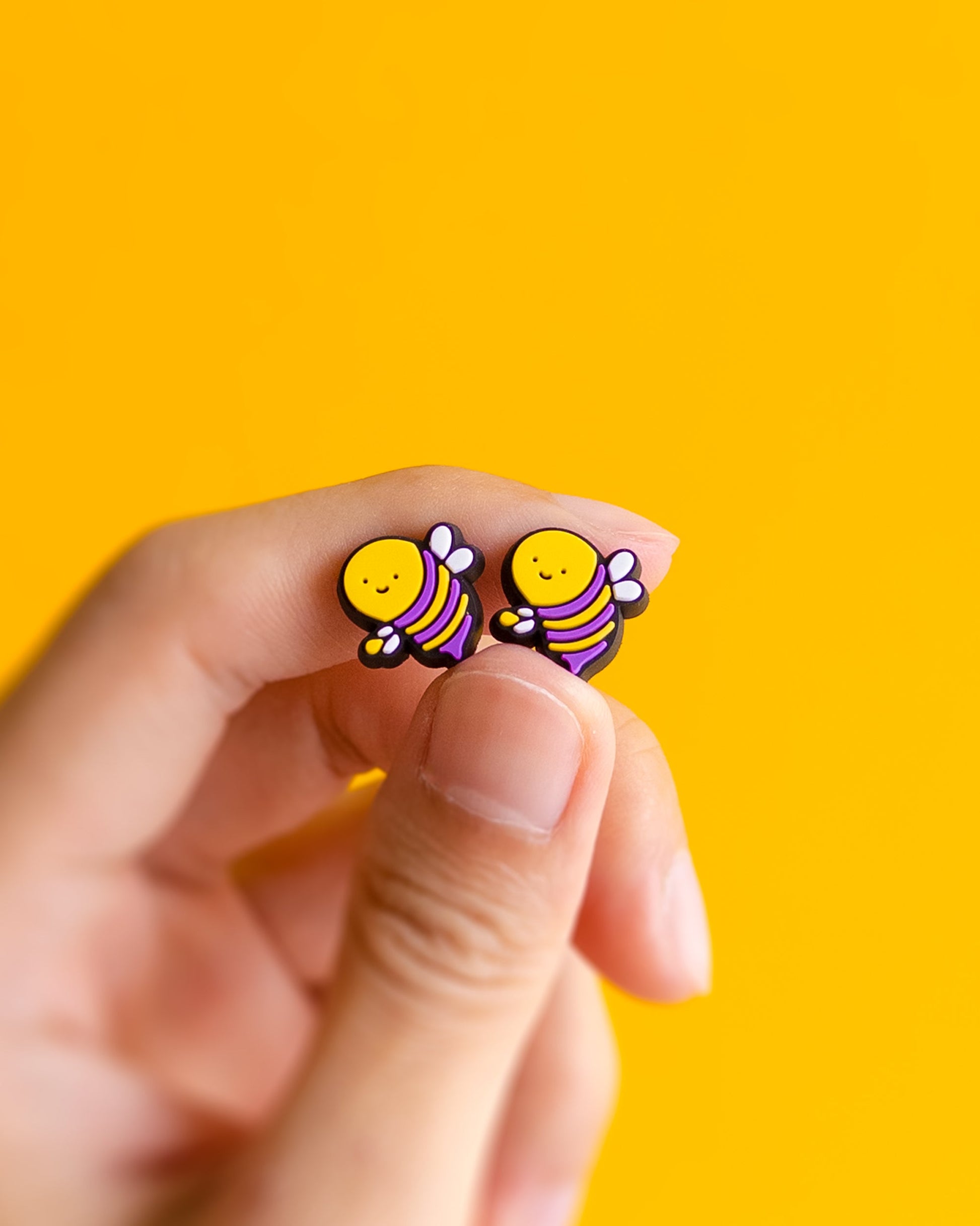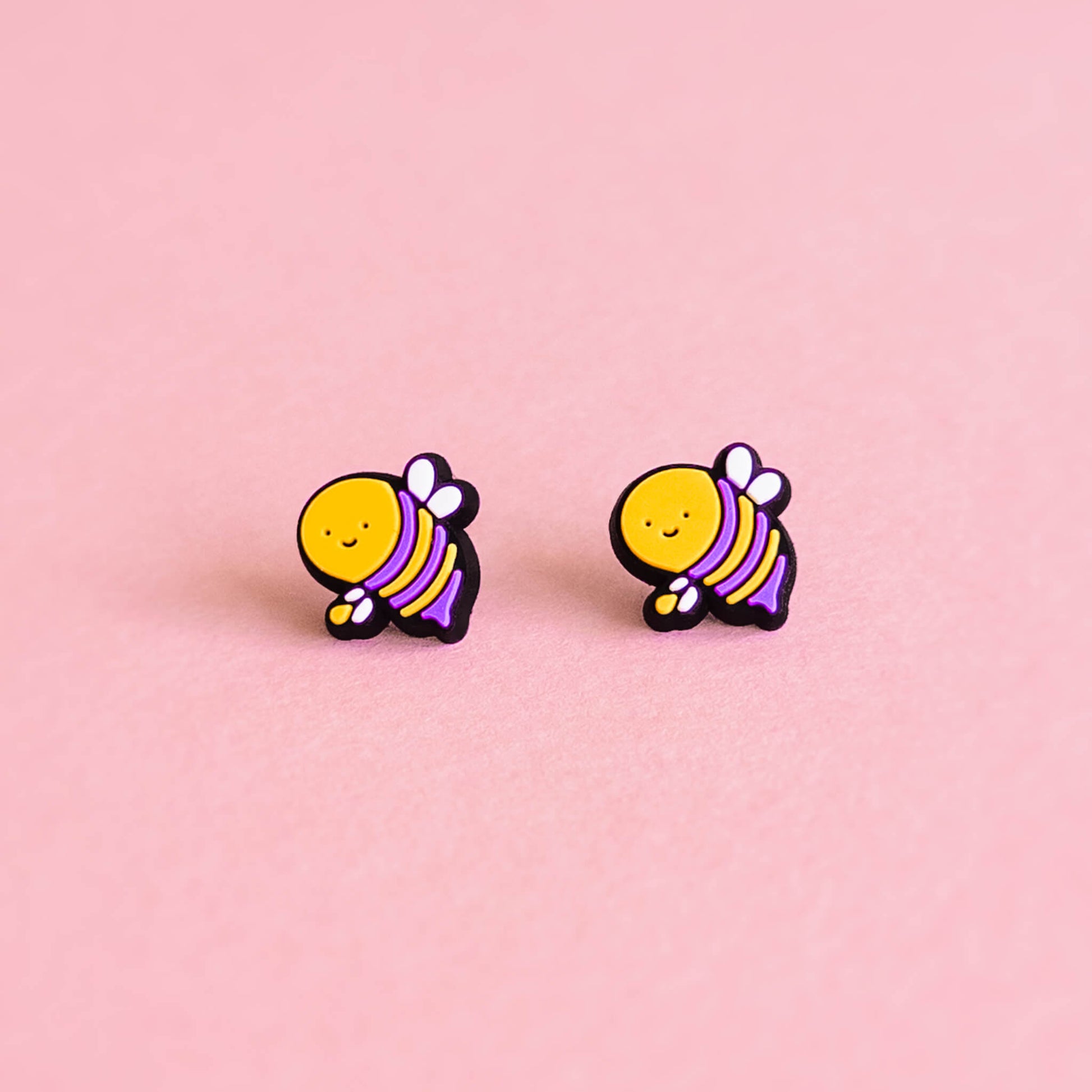 Let this tiny enbee non-binary bee show off your non-binary pride! 💛🤍💜🖤🐝