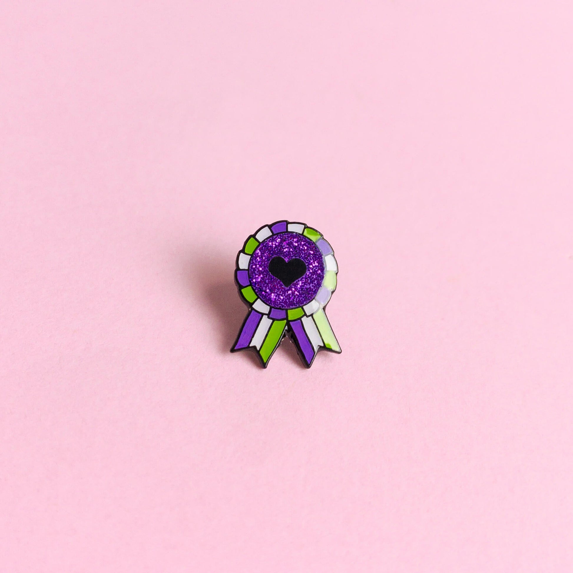 Get this cute little Genderqueer Award Badge to express your genderqueer pride! It sports the genderqueer pride flag colours, and is small and subtle so you don't need to worry about outing yourself to non-affirming people! Also, the centre sparkles, so you can literally let your pride shine ✨.