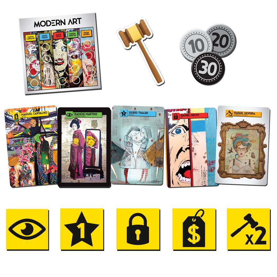 Reiner Knizia’s classic high stakes art auction game, Modern Art, gets a modern makeover. You control a world class museum and hope to make a pretty penny by buying and selling masterpieces of modern art. Over the course of four rounds, each player will get a chance to auction off paintings. The more popular the artist, the more money you can make on a sale. There are five different types of auctions to compete in, and they all require you to have a different skill set. The winner will be the one who has earned the most money for their museum. Having good taste is only half the battle. You need to approach each sale with a cutthroat attitude if you want to walk away the winner.