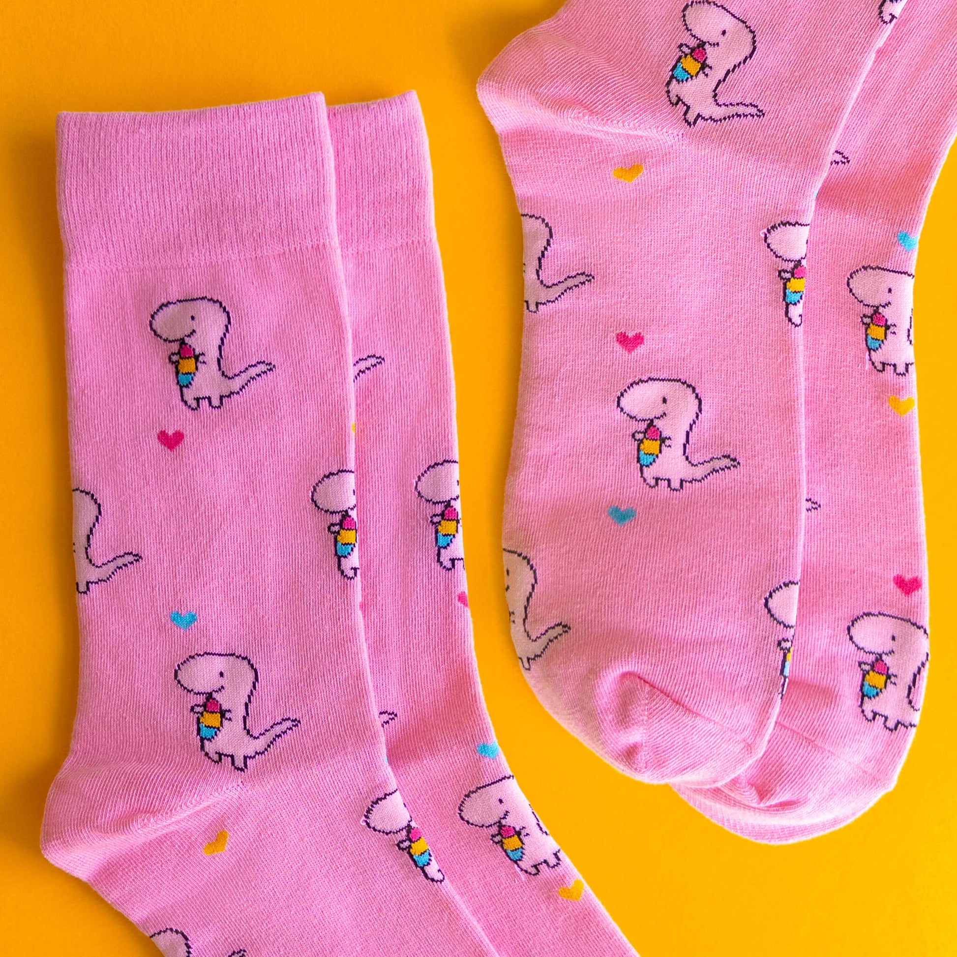 This ferociously wholesome pansexual Pannosaurus Rex really just wants to send love to everyone 💖💛💙