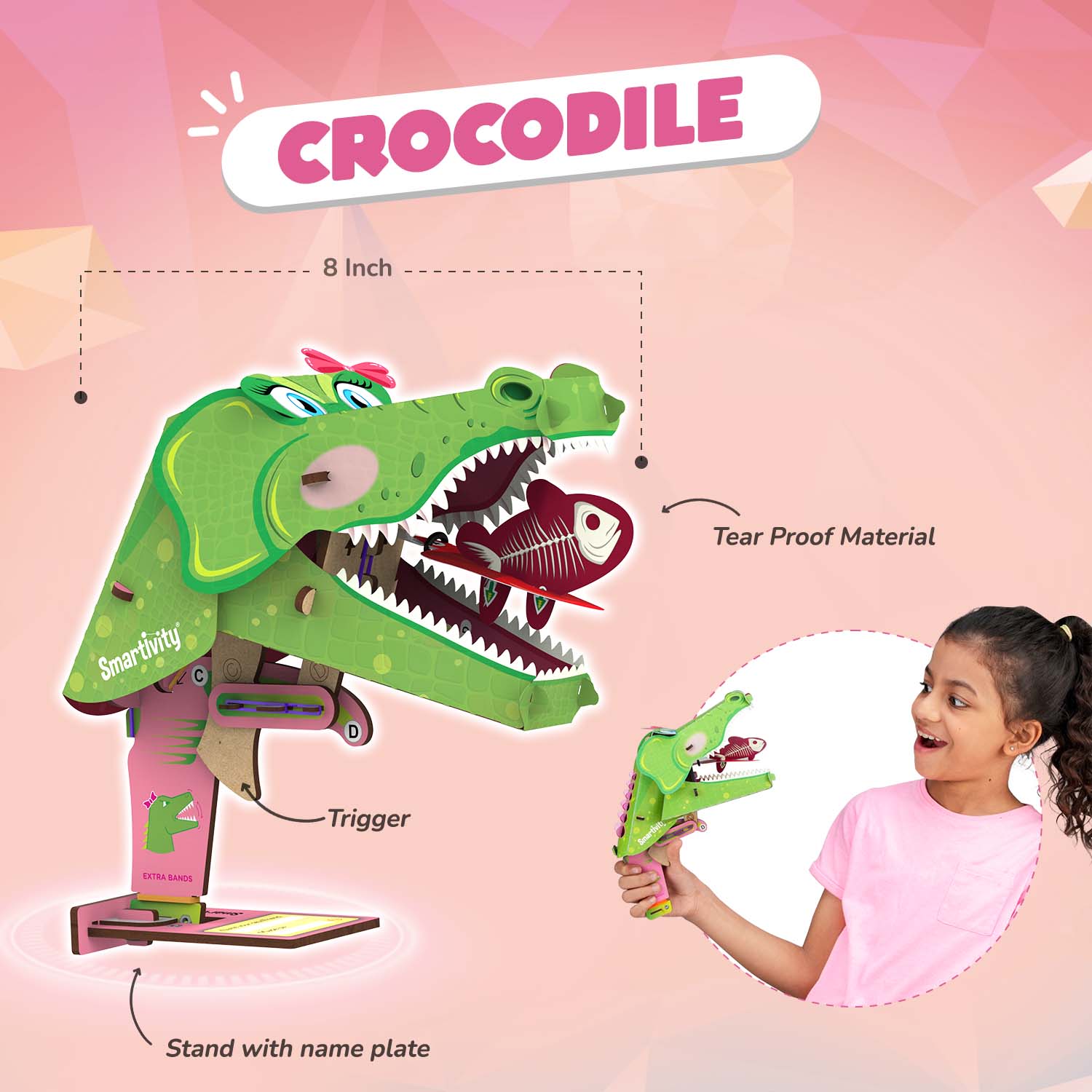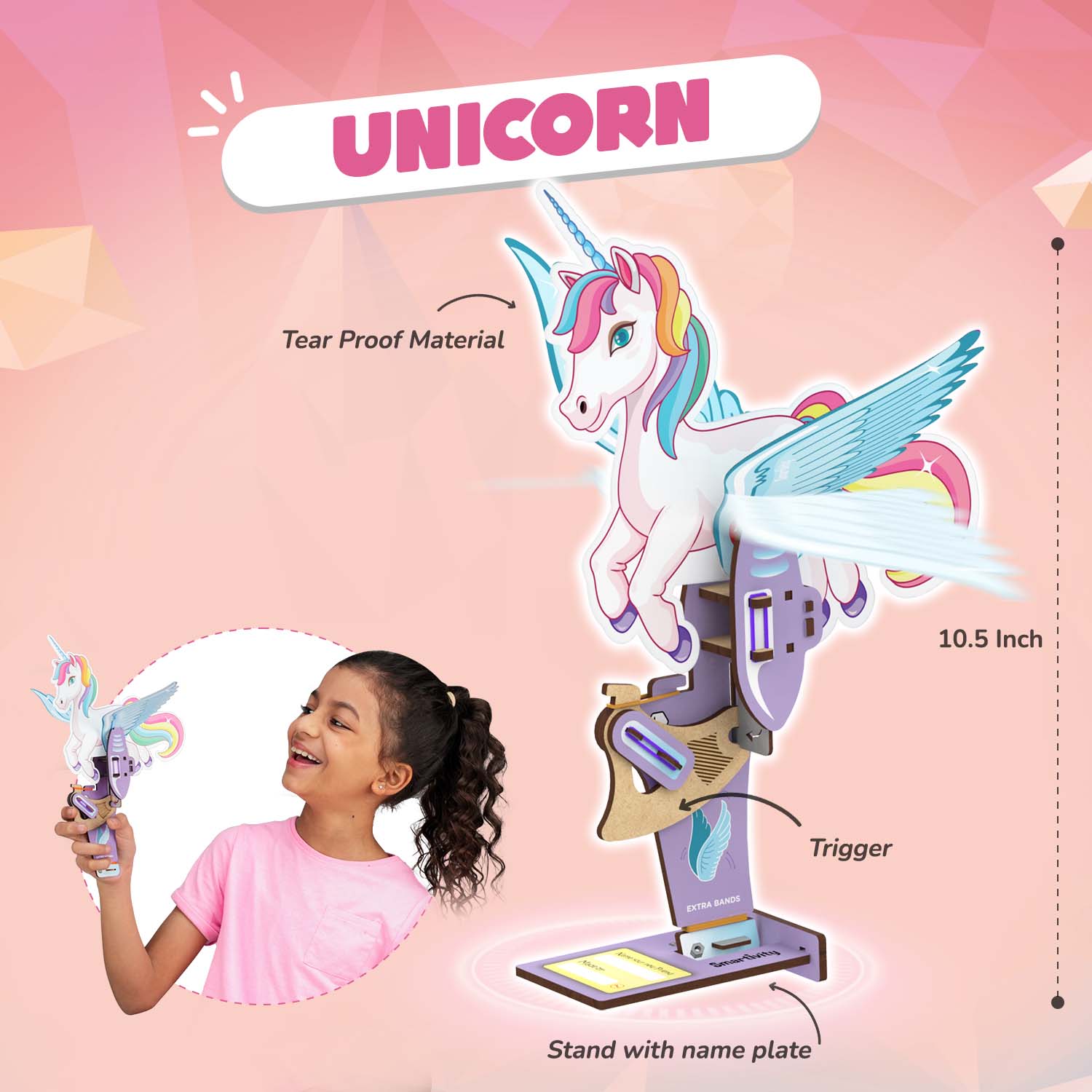 Build two Mechanical Wonders with easy step-by-step instructions. Make the Unicorn flap it’s magical wings. Control the Crocodile’s pointy jaws to reveal it’s meal. Name and display your creations proudly on the included stand. Let your imagination ignite!