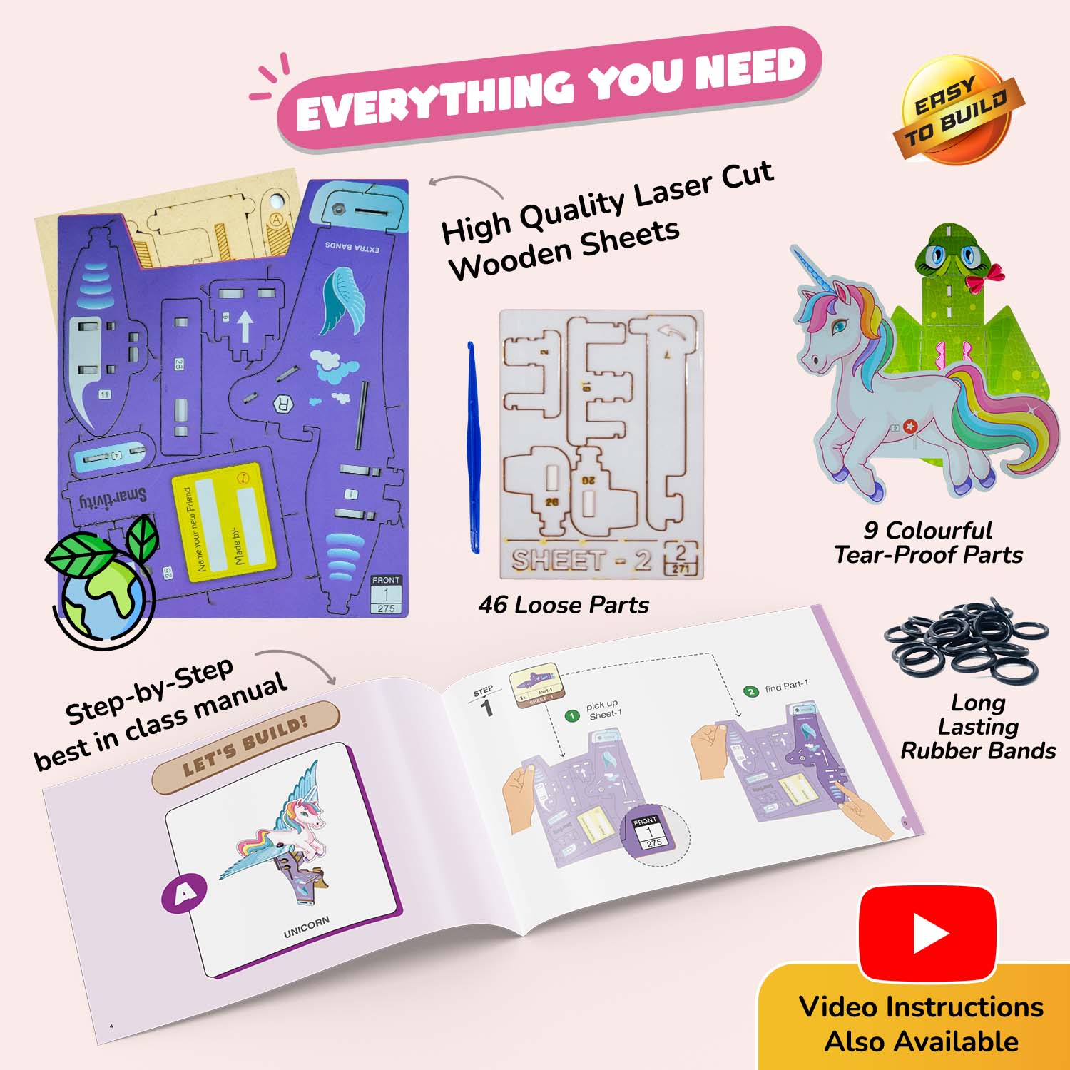 - 9 Colourful Tear-Proof Parts.