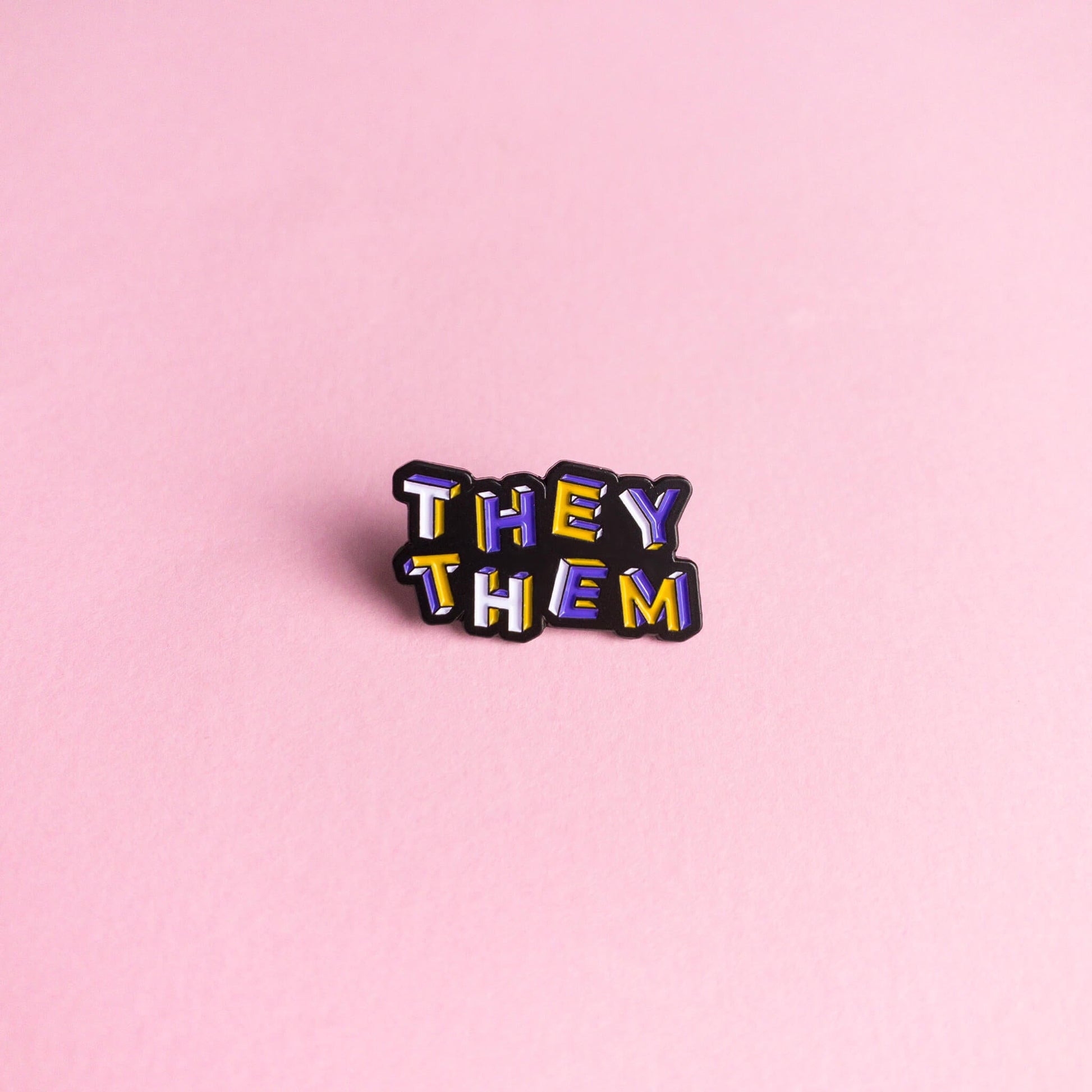 Break free of the binary and celebrate gender-neutral pronouns with this cute "They / Them" pin!